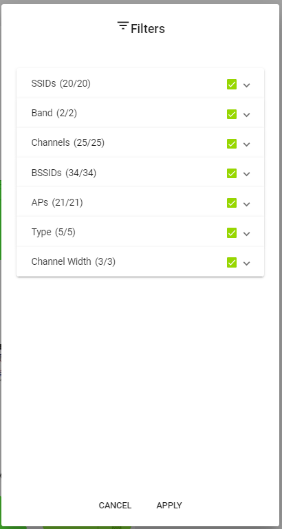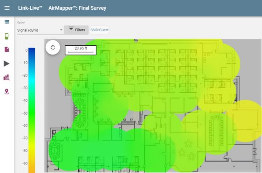 AirMapper* 現(xiàn)場勘測應(yīng)用程序使您能夠?qū)κ覂?nèi)或室外位置執(zhí)行 Wi-Fi 勘測,并將其上傳到 Link-Live。在這里,您可以查看每個(gè)數(shù)據(jù)收集點(diǎn)的熱圖和Wi-Fi測量值。信號熱圖可供所有用戶使用,但是,某些功能僅適用于具有有效AllyCare支持合同的單位。
